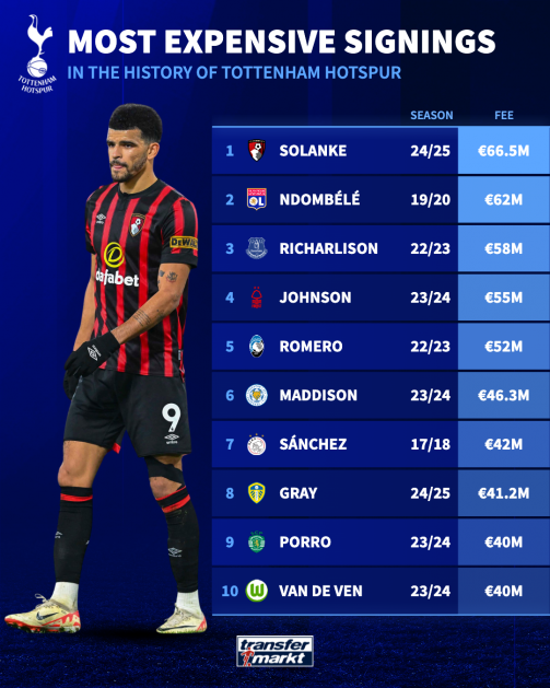 Daniel Levy a investit peste 400 de milioane de euro net în ultimele cinci sezoane, dar mulți dintre jucătorii aduși pe sume uriașe – precum Maddison, Solanke, Bissouma, Odobert sau Richarlison – nu s-au ridicat la nivelul așteptărilor. Misiunea principală a lui Thomas Frankeste să preia acest lot și să găsească un stil de joc care să scoată în evidență atuurile celor mai valoroși jucători.